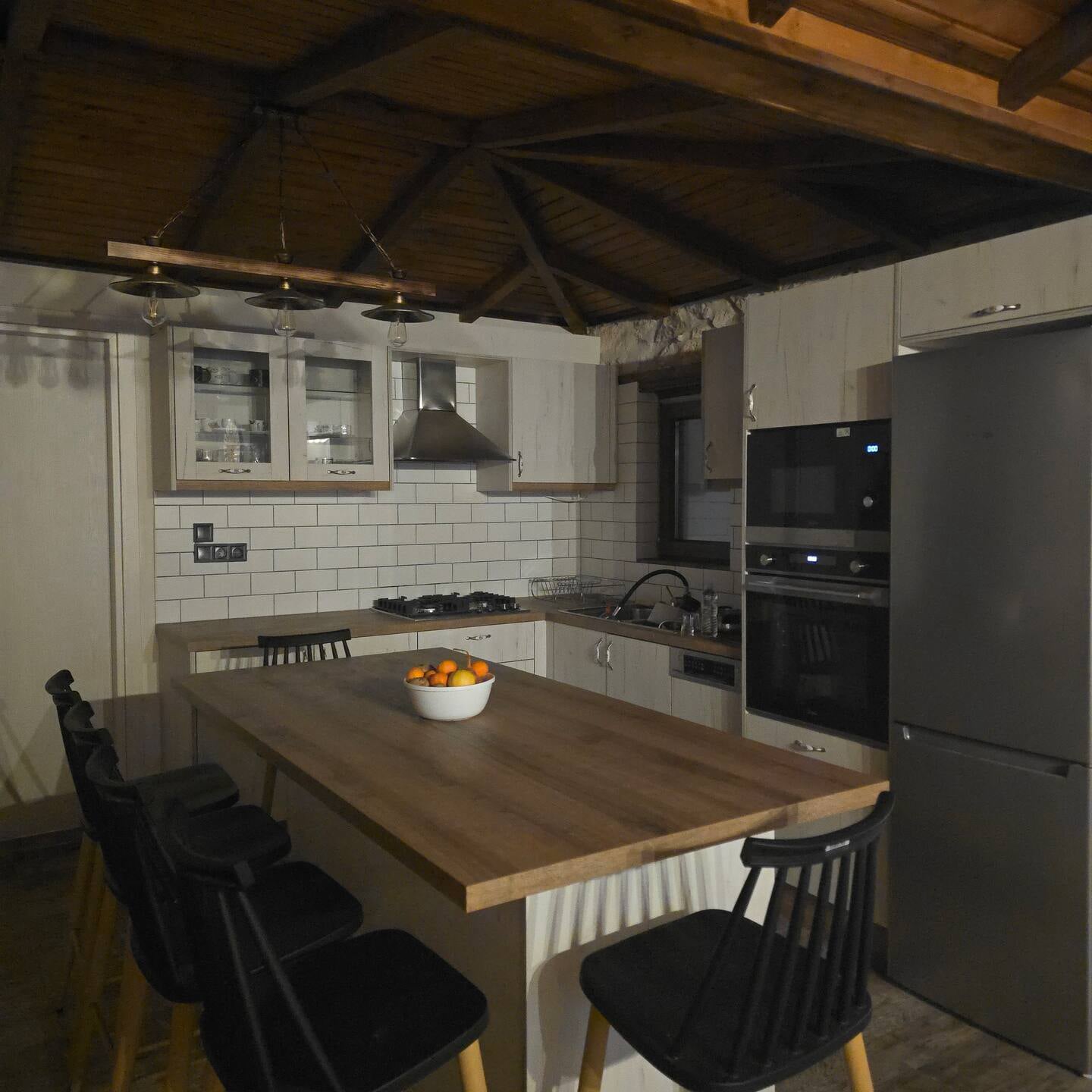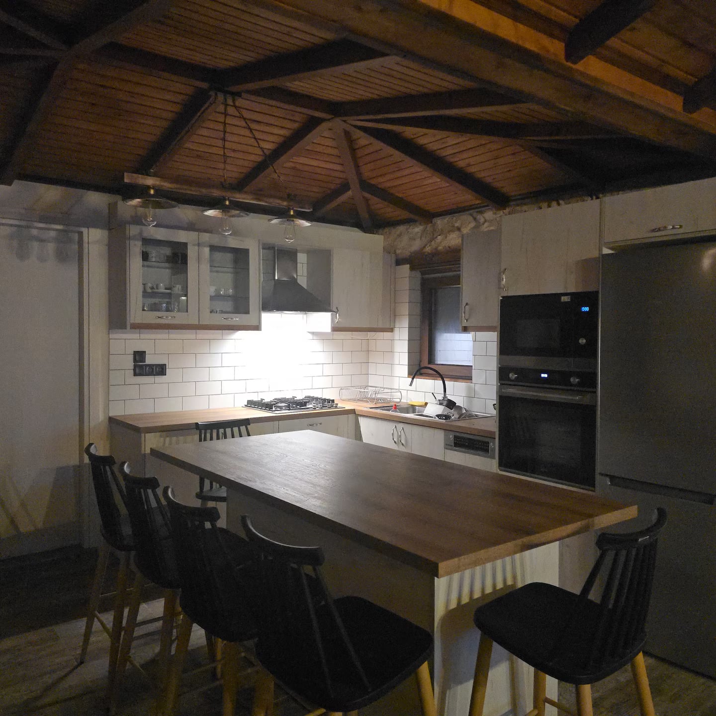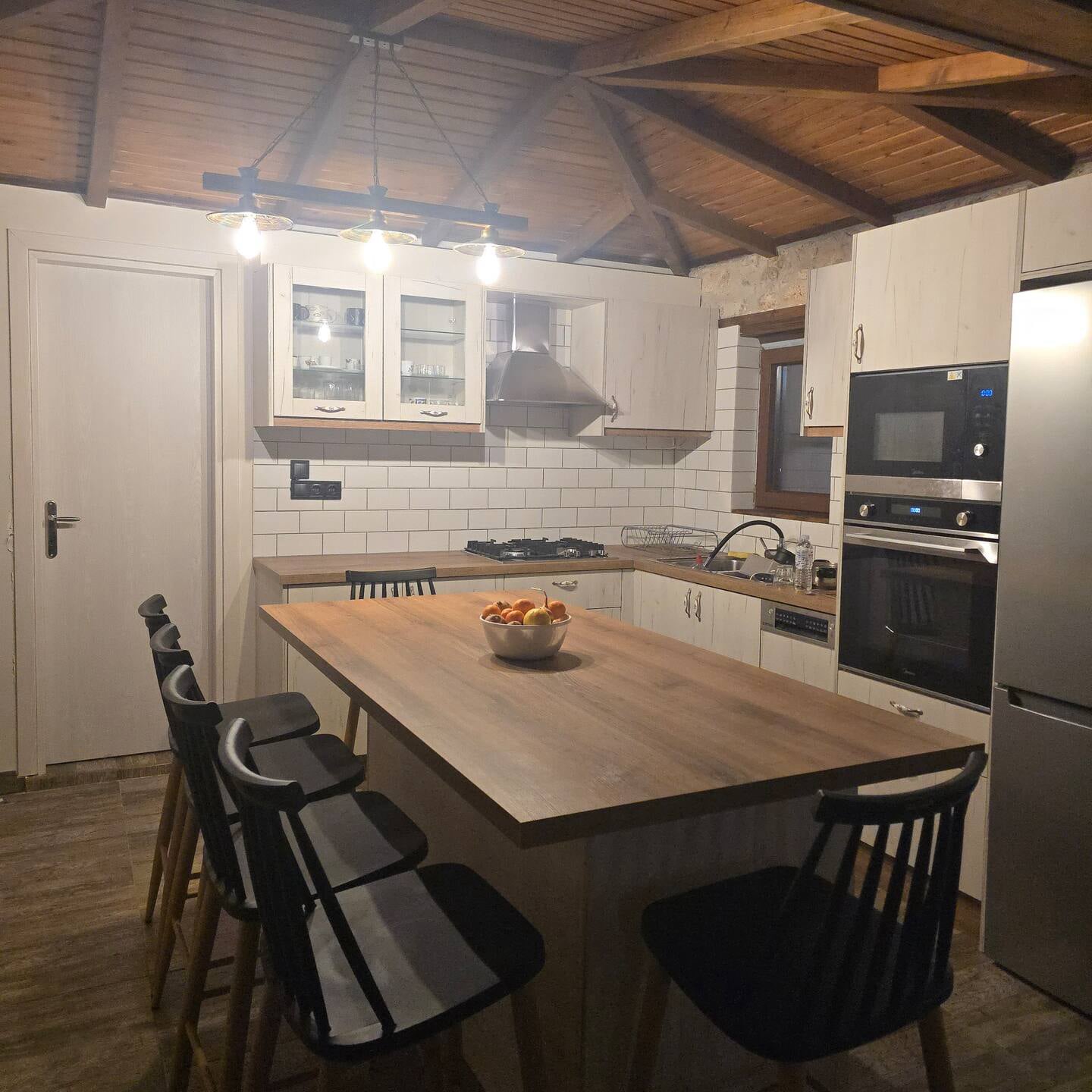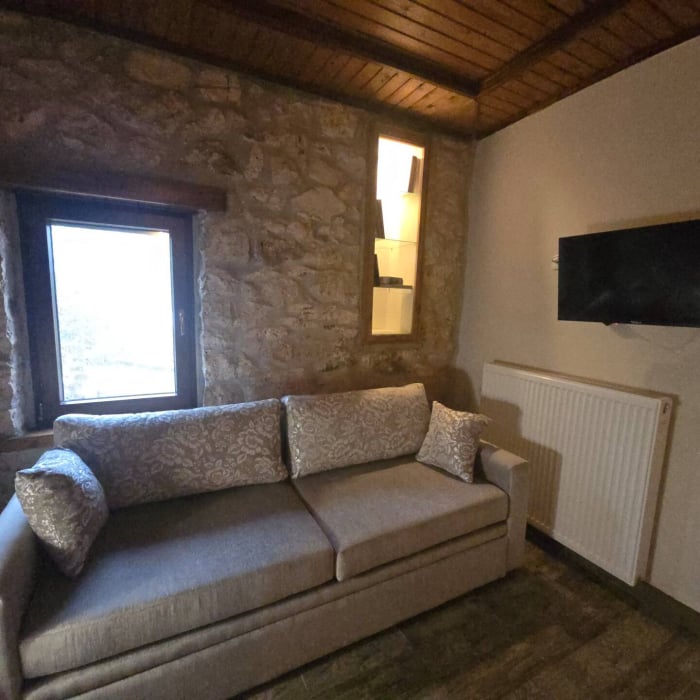 Στο κατάλυμα φιλοξενίας μας μέσα στη φύση, μπορείτε να μείνετε άνετα έως και έξι άτομα. Υπάρχει ένα υπνοδωμάτιο με διπλό κρεβάτι και ένας καναπές-κρεβάτι δίπλα του. Το σαλόνι και η κουζίνα είναι ενιαίος χώρος με ένα καναπε κρεβατι και ένα παραδοσιακo μπασι καναπέ oπου μπορούν να κοιμηθούν αλλα δυο ατομα, ενώ υπάρχει και ξεχωριστό μπάνιο. Έχουμε όλες τις ηλεκτρικές συσκευές που θα χρειαστείτε—από πλυντήριο πιάτων και φούρνο μικροκυμάτων μέχρι στεγνωτήριο και πλυντήριο ρούχων. Με απλά λόγια, είναι ένα μέρος που μπορεί να φιλοξενήσει μια οικογένεια για πολλές μέρες χωρίς καμία έννοια.